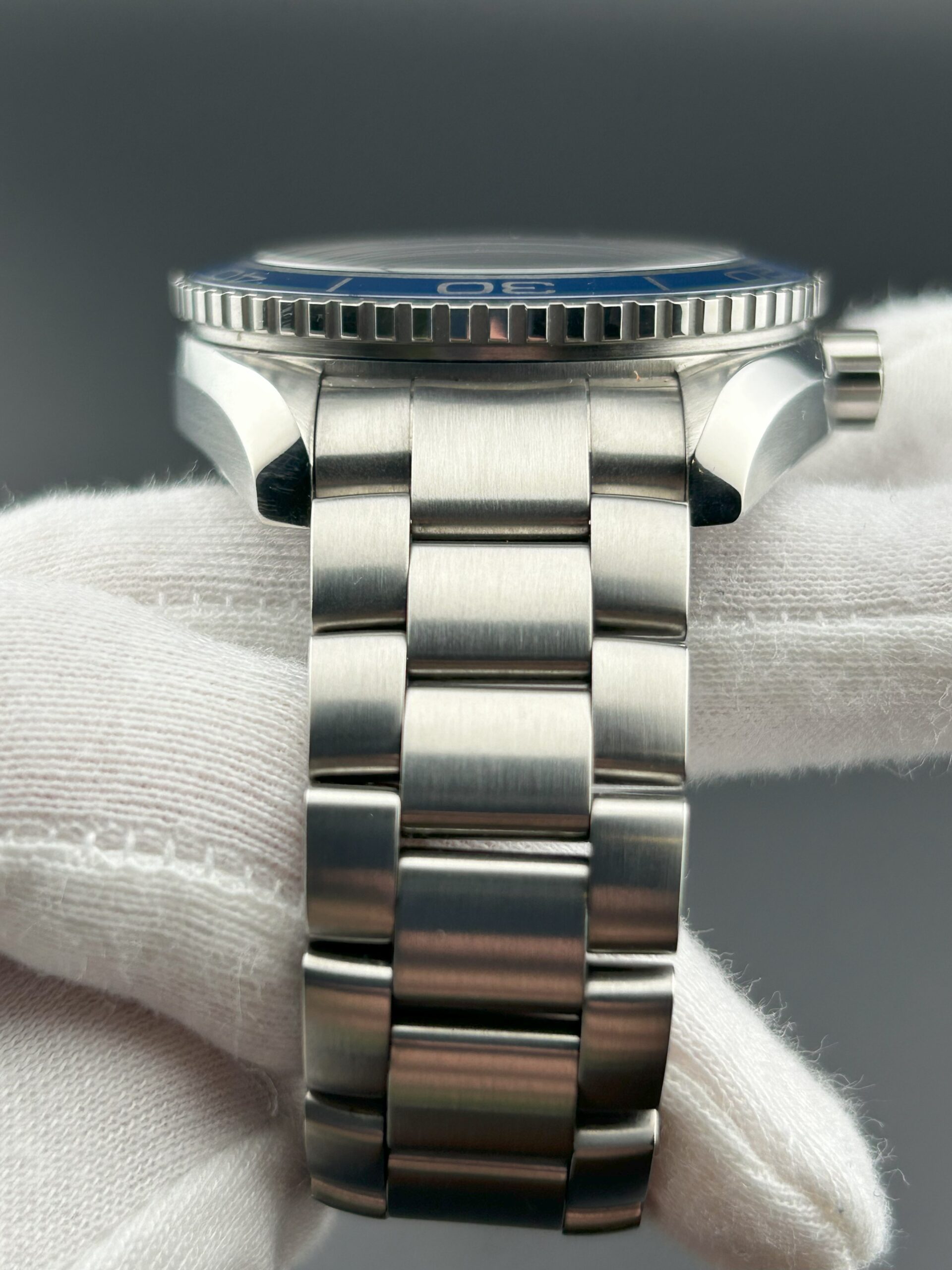 This watch is in excellent, near-mint condition. The crystal, bezel, case, and caseback are immaculate. The bracelet is in excellent condition, with only a small mark on the side of one of the links, as well as clasp marks where the bracelet folds under the top and bottom of the clasp (these clasp marks are completely hidden when the clasp is closed). Please see pictures, as we tried our best to capture any imperfections.